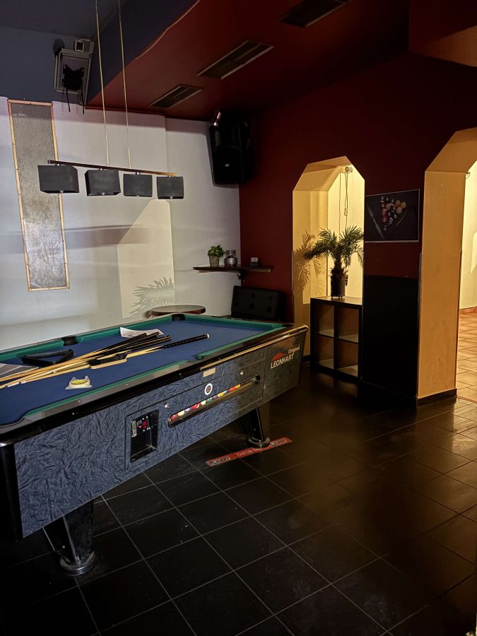 Eine eigene Küche ist nicht vorhanden, wodurch sich die Fläche besonders für Konzepte ohne klassische Gastronomie eignet. Gleichzeitig profitieren Betreiber und Gäste von der praktischen Nachbarschaft: Zwei Pizzerien befinden sich in direkter Umgebung, sodass sich attraktive Möglichkeiten für eine unkomplizierte Versorgung der Gäste ergeben. Zusätzlich stehen ein kleiner Abstellraum, ein Garderobenraum sowie ein Kellerraum zur Verfügung. Das Objekt ist barrierefrei zugänglich und verfügt über einen Raucherbereich.