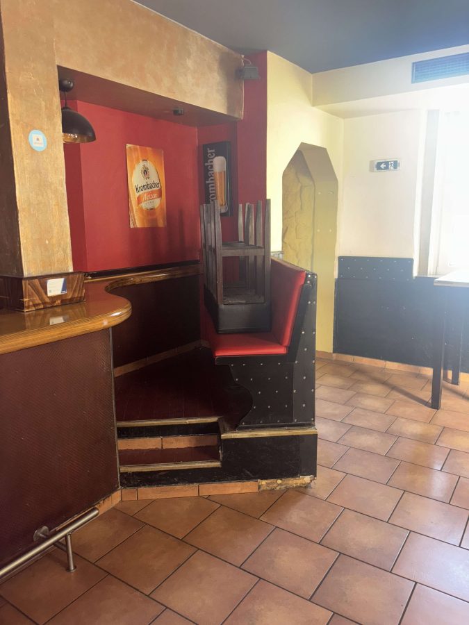 Die Räumlichkeiten präsentieren sich in ordentlichem Zustand und bieten beste Voraussetzungen für einen schnellen Start. Besonders attraktiv ist, dass bereits Tische, Stühle und Bänke vorhanden sind, sodass der Betrieb kurzfristig aufgenommen werden kann. Die große Theke bildet das Herzstück der Kneipe und schafft eine klassische, einladende Atmosphäre. Ein kleiner Abstellraum, ein Garderobenraum sowie ein Kellerraum bieten zusätzliche praktische Nutzflächen.