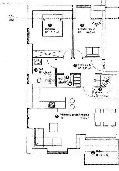 Bäder: Tageslichtbäder mit modernen Sanitäranlagen, zzgl. Gäste-WC