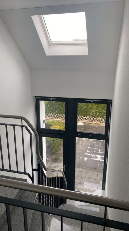Hauseingang Erdgeschoss: Türanlage mit Verbundsicherheitsglas und Mehrfachverriegelung, Videosprechanlage mit elektrischem Türöffner, freistehende Briefkästen- und Klingelanlage, Hauseingangsbeleuchtung mit Bewegungsmelder
