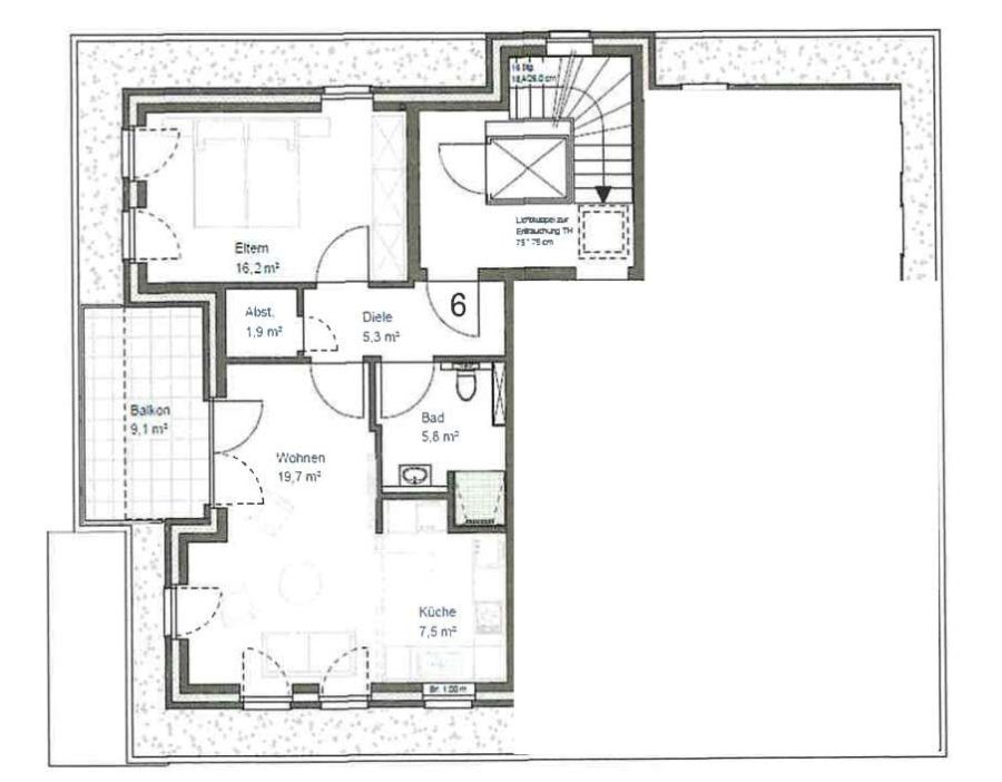 Die angebotene Immobilie befindet sich im Dachgeschoss eines gepflegten Mehrfamilienhauses.