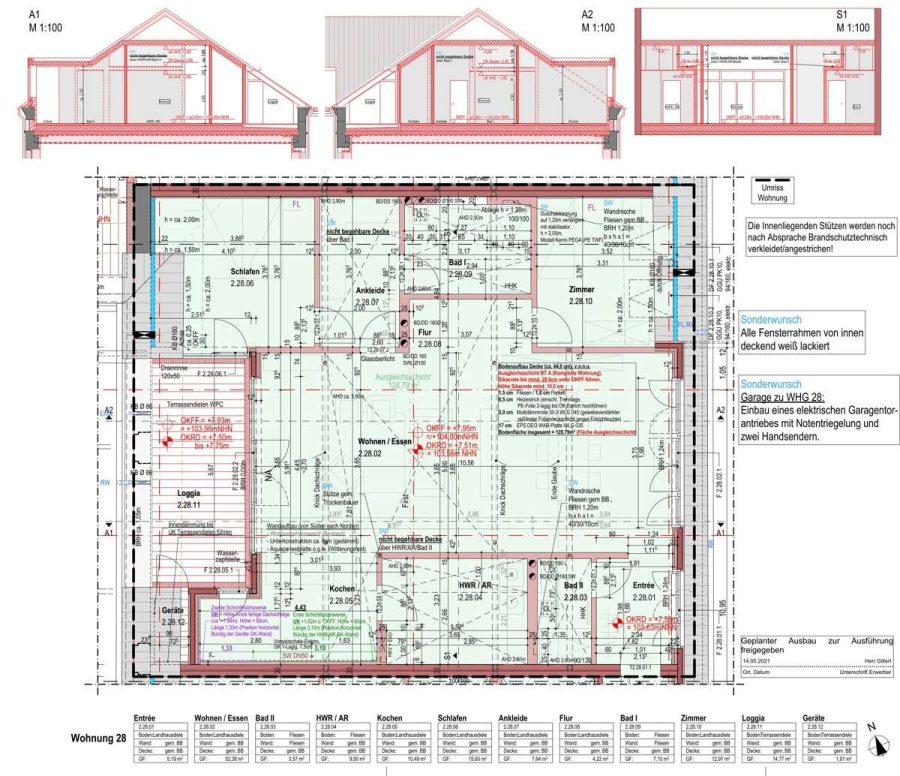 2 Schlafzimmer, ein Hauswirtschaftsraum, eine Ankleide sowie ein ca. 7 m² großes Badezimmer befinden sich ebenfalls noch im Loft.