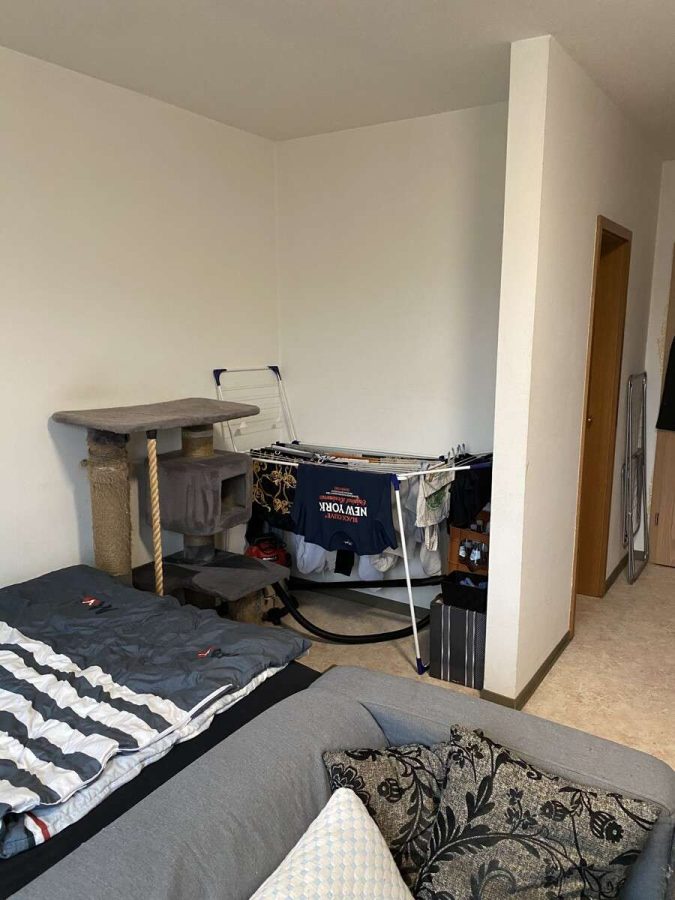 Auf ca. 24 m² befinden sich ein Wohn-/Schlafraum, eine Pantryküche, ein Abstellraum sowie ein innenliegendes Duschbad. Die Böden im Wohnbereich sind mit einem hellen PVC-Boden ausgestattet. Im Badezimmer befindet sich ein Fliesenboden.