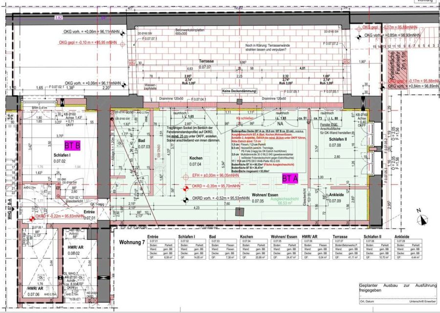 Dieses Loft befindet sich im Erdgeschoss des Gebäudetraktes B. Hier empfangen Sie Ihre Gäste in einem ca. 6 m² großen Entrée, der ca. 45 m² große und offene Wohn-/Essbereich lädt zum Kochen, Wohnen, Leben und speisen ein.