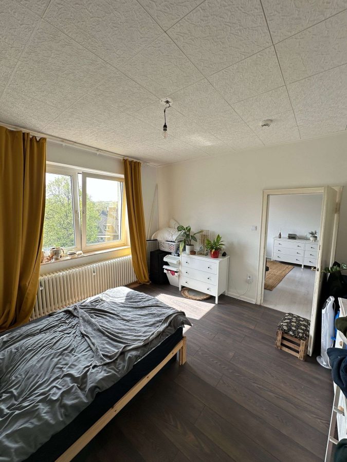 Die Wohnung ist ab dem 1. Juli 2026 verfügbar. Die Ausstattung umfasst einen hellen Wohn- und Schlafbereich mit großen Fenstern, einen modernen Küchenbereich und ein Badezimmer mit Badewanne und Glasduschwand. Das helle Schlafzimmer mit Blick ins Grüne ist ideal zum Entspannen nach einem Tag.