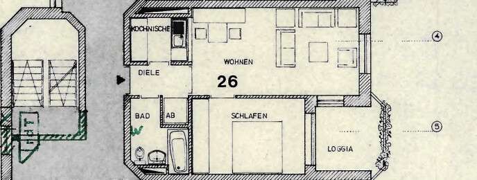 Ihre rund 48 m² Wohnfläche verteilen sich auf zwei Zimmer, Diele mit Einbauschrank, Bad und Loggia: