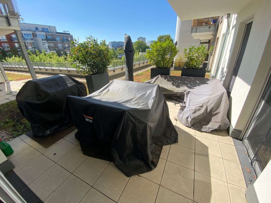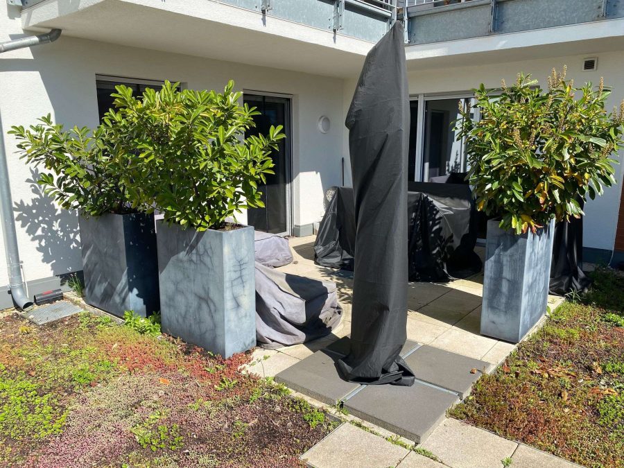 Die vorhandene Einbauküche (ohne Kühlschrank), 2 Unterschränke im Badezimmer, Deckenspots, die Blumenkübel auf der Terrasse, Garderobenmöbel sowie Gardinenstangen und Vorhänge können von den Vormietern für 4.500,- € VB übernommen werden. Die Terrasse lädt mit ihren hellen Fliesen und grünen Pflanzgefäßen, welche vom Vormieter käuflich übernommen werden können, zum Entspannen im Freien ein. Ein Aufzug ermöglicht einen barrierefreien Zugang zur Wohnung. Die Beheizung erfolgt über eine effiziente Fernwärme (Teleheizung), die für angenehme Wärme und Kostenersparnis sorgt. Zusätzlich steht ein Tiefgaragenstellplatz zur Verfügung.